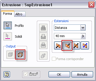 Eseguire il comando Estrusione. Impostare l'output su Superficie e selezionare la spline per soddisfare la selezione del profilo. Impostare la distanza su 40-mm. Invertire la direzione dell'estrusione in modo che il profilo intersechi i corpi esistenti. Fare clic su OK per creare la superficie.