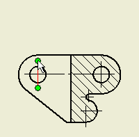 - Quando vengono visualizzati i due cerchi verdi e la linea verticale viene evidenziata, fare clic per selezionare la linea verticale del centro come estensione sinistra della quota.