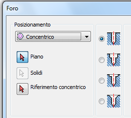 È possibile creare fori senza uno schizzo preesistente. Nella seguente sezione vengono descritte delle procedure alternative per il posizionamento di fori.