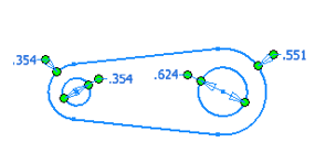- Utilizzare i comandi di navigazione, quali Visualizza faccia e Zoom finestra, per posizionare la geometria dello schizzo nella finestra grafica come mostrato.