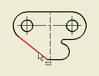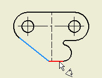Spostare il cursore sulla linea angolare nella vista anteriore. Quando la linea viene evidenziata, fare clic per selezionare il primo lato dell'angolo al quale si desidera assegnare la quota. Per la selezione corrente non è necessario individuare un punto chiave nella linea. Non è necessario individuare cerchi verdi che consentono la selezione del punto medio o del punto finale della linea.