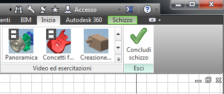 Notare che il comando Concludi schizzo viene mantenuto nella scheda Inizia, e che anche l'etichetta della scheda Schizzo è evidenziato.