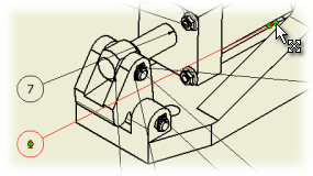- Spostare il cursore sulla maniglia di modifica più lontana situata nella punta di freccia della direttrice dal numero di riferimento 1.