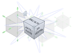 - Offre facce con etichette per indicare l'angolo di vista corrente relativamente al modello globale.