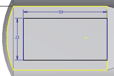 Ora è necessario creare un terzo schizzo per disegnare e quotare un rettangolo. Il rettangolo viene quindi estruso con un taglio per produrre un'apertura di forma rettangolare attraverso la parte.