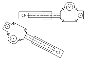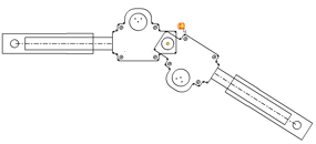 - Fare clic sulla geometria Connecting Rod nella finestra grafica e trascinarla. Le istanze del blocco di schizzo iniziano a dimostrare la cinematica di base per effetto del vincolo collineare.