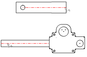 - Creare una linea d'asse attraverso il centro dell'istanza Worm Gear Assy, come indicato. Assicurarsi che i punti finali della linea d'asse siano vincolati alla geometria Worm Gear Assy. Questa linea d'asse parteciperà ad un vincolo collineare con la linea d'asse della Connecting Rod.