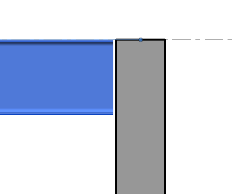 Nella seguente illustrazione è raffigurata la vista di sezione di una trave associata ad un muro. Il punto di attacco della trave è visibile nella parte centrale superiore del muro.