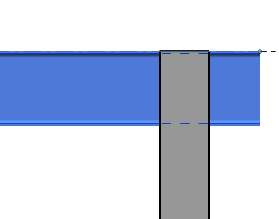 Trave e pilastro in vista di pianta con punto di attacco nel centro del pilastro