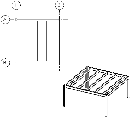 Nelle viste di pianta e 3D è possibile scegliere le travi e i muri strutturali per definire il contorno del sistema di travi strutturali.