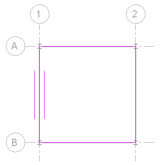 Viene visualizzata una linea di disegno con due punti di manipolazione sul supporto selezionato. Su ogni lato della linea vengono visualizzate due linee parallele corte, ad indicare la direzione del sistema di travi.