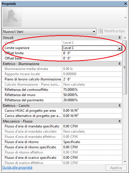 Calcolo aree e volumi) sia selezionata (impostazione di default). Per ulteriori informazioni, vedere Calcolo dei volumi.Se si crea una sezione, assicurarsi che la linea di sezione intersechi il vano nella pianta del pavimento, di modo che il vano sia visibile nella vista di sezione.