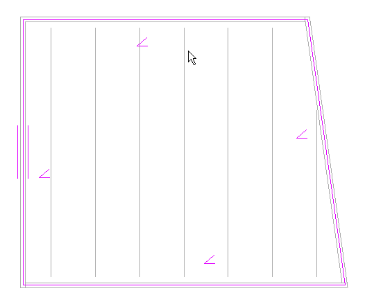 - Se la linea di disegno non determina l'inclinazione, l'estremità della trave viene innalzata fino a raggiungere un piano determinato dai punti finali delle due linee di disegno più vicine che determinano l'inclinazione.