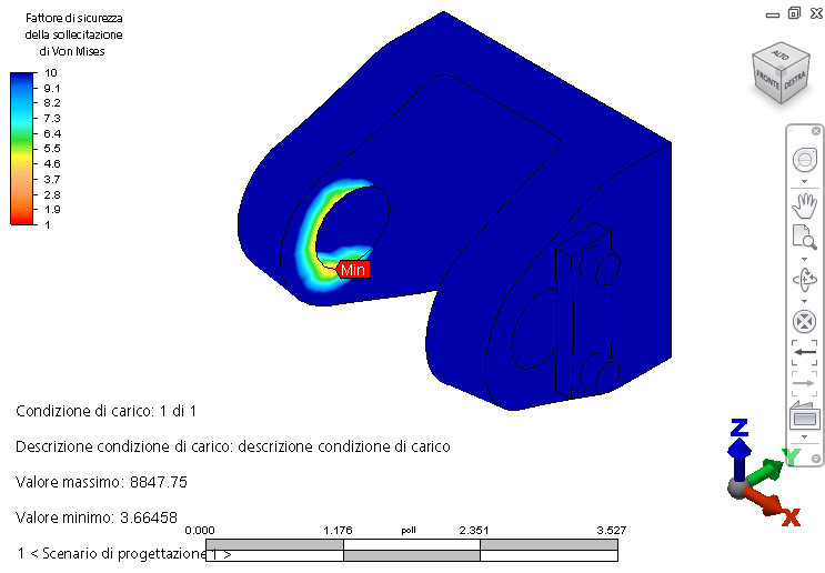 Minimo per contrassegnare il punto del modello con il risultato del fattore di sicurezza minimo. Si dovrebbe visualizzare quanto segue: