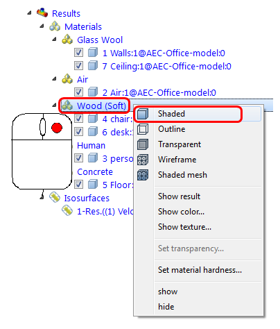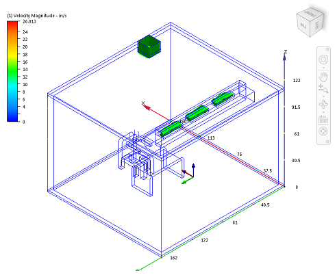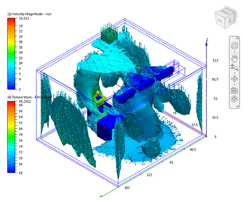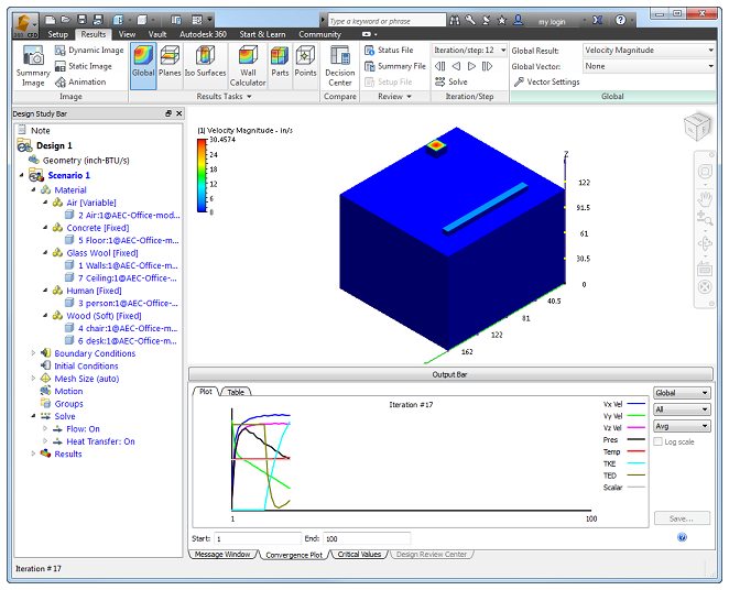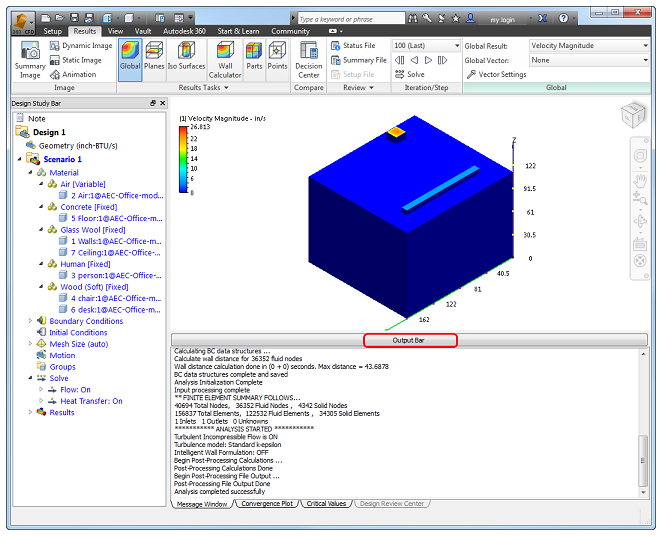 Dopo aver eseguito la simulazione, è possibile osservare il modo in cui l'aria fluisce attraverso l'ufficio.