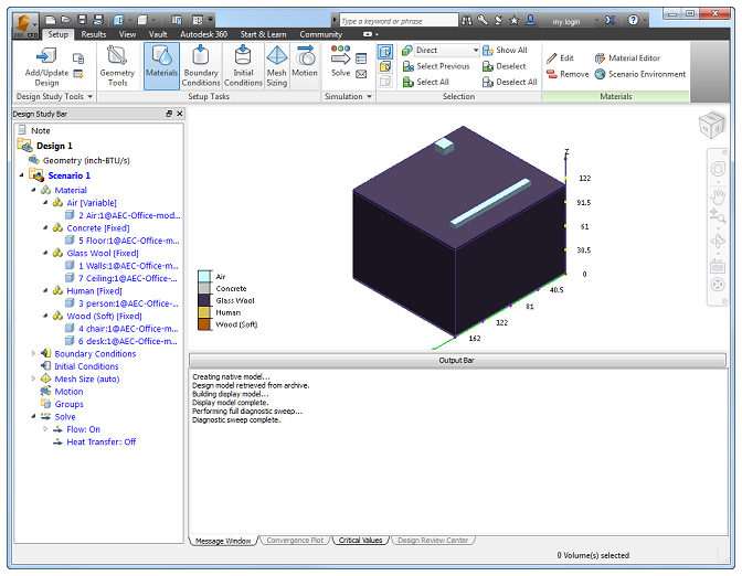 In questo esercizio, il modello è già stato impostato. Se si desidera completare i passaggi da soli per approfondire le conoscenze di simulazione AEC in Autodesk® Simulation CFD, fare clic qui.