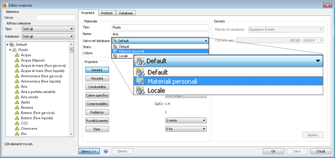 Molti materiali nel database di default vengono definiti con proprietà variabili. Per specificare se i materiali sono costanti o variabili in uno scenario:
