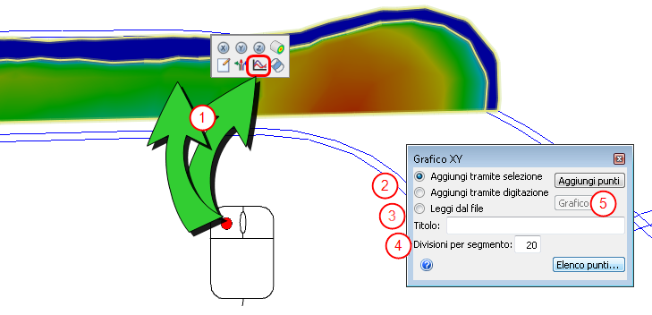 Creare un grafico XY selezionando i punti su una superficie di taglio, immettendo le coordinate punto, o con i punti salvati da un grafico precedente. Il numero massimo di punti in un grafico XY è 500.