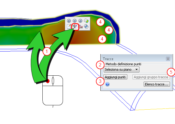 - Fare clic sui punti del piano (o trascinare la griglia).