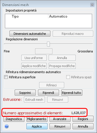14. To see the new approximate element count, click Spread Changes in the Mesh Sizes dialog. Note the reduction from the original estimate.