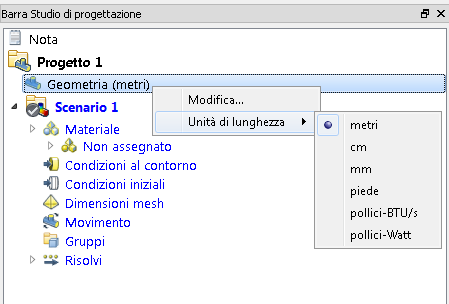 Le impostazioni di geometria eseguite per un progetto si applicano a tutti gli scenari all'interno del progetto.