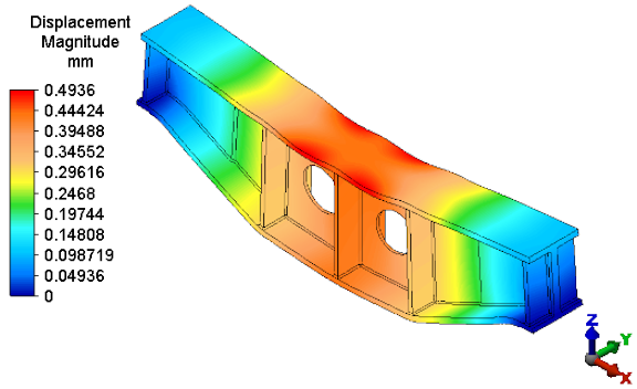 Magnitude. The maximum displacement is now slightly less than the allowable displacement of 0.5 mm, as shown below.