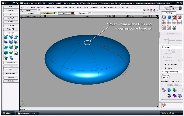 The biggest challenge when working with revolved surfaces and spheres is the "pole". This is where all the CV's and isoparms come together. If you've ever picked apart one of these surfaces, you'll know that the poles are a nasty dirty mess. There are many things all piled on top of on another.