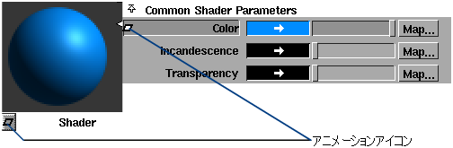 Multi-listerのEnvironment、シェーダ、テクスチャ、またはライトのスウォッチの左下コーナーにあるアニメーションアイコンをクリックしたままにします。