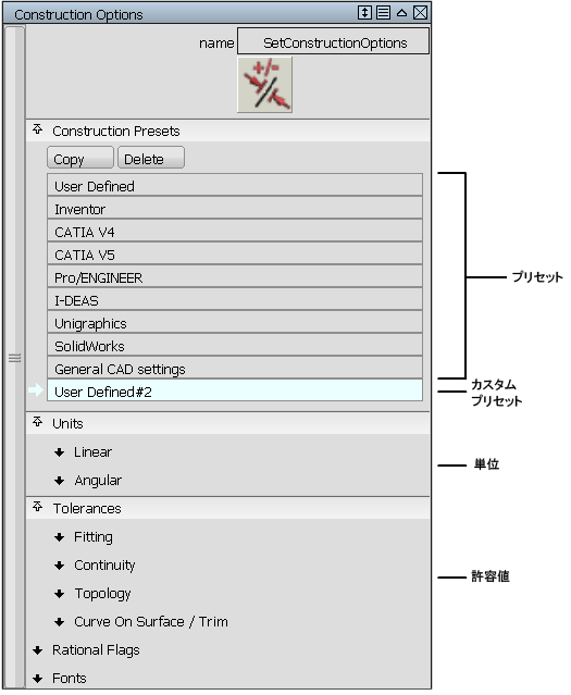 Construction Options(Rhino では「Tolerances」と呼ばれます)