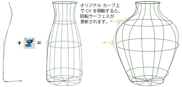 ジオメトリの依存性と関連性。サーフェスの基になるカーブが変更されると、サーフェスも変更されます。Preferences