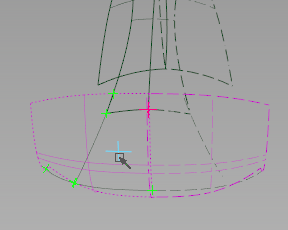 でクリック&ドラッグして、選択した CV を上方向に動かします。同じカーブの最初の CV の近くにカーソルを動かします。選択した CV がその CV と同じ高さにスナップします。