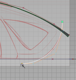 をクリック&ドラッグして 3 つのエディット ポイントを配置して、背面エッジに沿ってカーブを描画します。