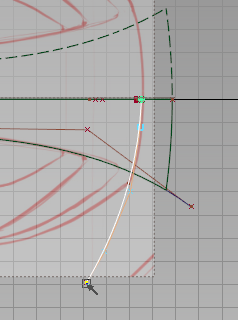 でクリック&ドラッグして、エディット ポイントをさらに 2 つ配置して背面カーブを定義します。