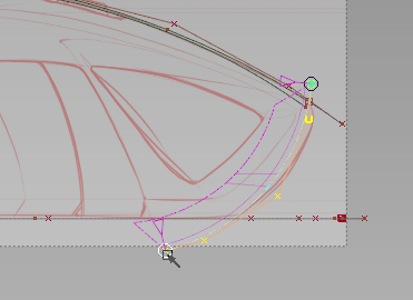でクリック&ドラッグして、背面エッジに沿って新しいエディット ポイントを開始し、