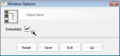 Object Lister が表示され、Alias ウィンドウ領域の左側にアタッチされます。 Embedded オプションは、メイン ウィンドウの上部に浮動せず、必要に応じて簡単にアクセスできるウィンドウを作成します。