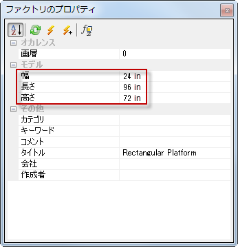 - 配置後にアセットの寸法(ピットのソリッドな壁の厚さなど)を修正するには、ファクトリのプロパティ ブラウザでパラメータ値を編集します。