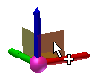 - 次に、座標軸の接合点の赤い球をクリックします。赤い球が緑色の点に変わります。マウスを動かすにつれて、座標系がコンポーネントとともに移動します。