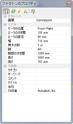 ファクトリのプロパティ ブラウザに一覧表示されている任意のパラメータの値を選択して編集することで、アセットのプロパティを変更できます。アセットは、ある画層から別の画層に移動することができます。選択したアセットに加えた変更は、その特定のインスタンスにのみ反映されます。変更は、ファクトリ アセット ライブラリには影響しません。