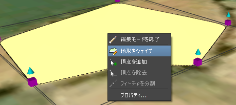 - カバレッジ エリアで右クリックしてコンテキスト メニューを開き、[地形をシェイプ]を選択します。