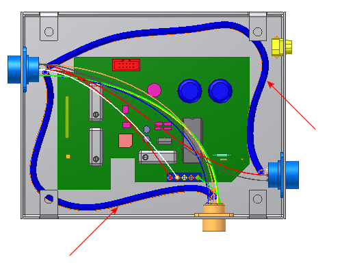 セグメントは、ワイヤまたはケーブルをアセンブリ内に通すことができる仮想パスを定義します。 グラフィックス ウィンドウの中で 1 回クリックするたびに、セグメント上に作業点が作成されます。 作業点は、セグメントを希望の位置に配置したり、希望の形状にするために使用されます。