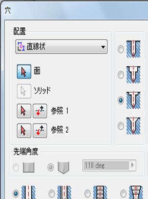 - 穴タイプを[キリ穴]、穴径を[10 mm]、穴の深さを[10 mm]に設定します。