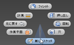 Autodesk Inventor LT も、右クリック メニューを使用しています。また、Inventor には、通常は右クリック メニューの上に配置されるマーキング メニューが導入されています。各環境で、頻繁に使用するコマンドはマーキング メニューに一覧表示されます。マーキング メニューを開始するには、グラフィックス ウィンドウ内を右クリックします。