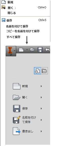 以前は[ファイル]メニューにあったコマンドが[アプリケーション]メニューに配置されました。
