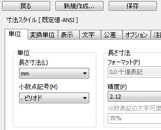 - [新規作成...]をクリックして、選択した Default (ISO)スタイルに基づいた寸法スタイルを作成します。