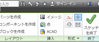 [スケッチ]タブには、[スケッチを終了]という、目立つコマンドがあります。
