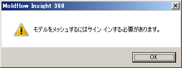 同様に、モデルをメッシュしようとして、[Autodesk - サイン イン]ダイアログをサインインせずに閉じると、モデルをメッシュするにはサインインする必要があることがリマインドされます。