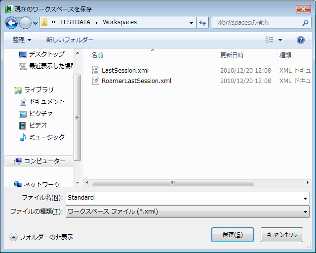 ダイアログ ボックスで、新しいワークスペースの名前を入力します。また、変更された環境設定で上書きする既存のワークスペースの名前を選択することもできます。