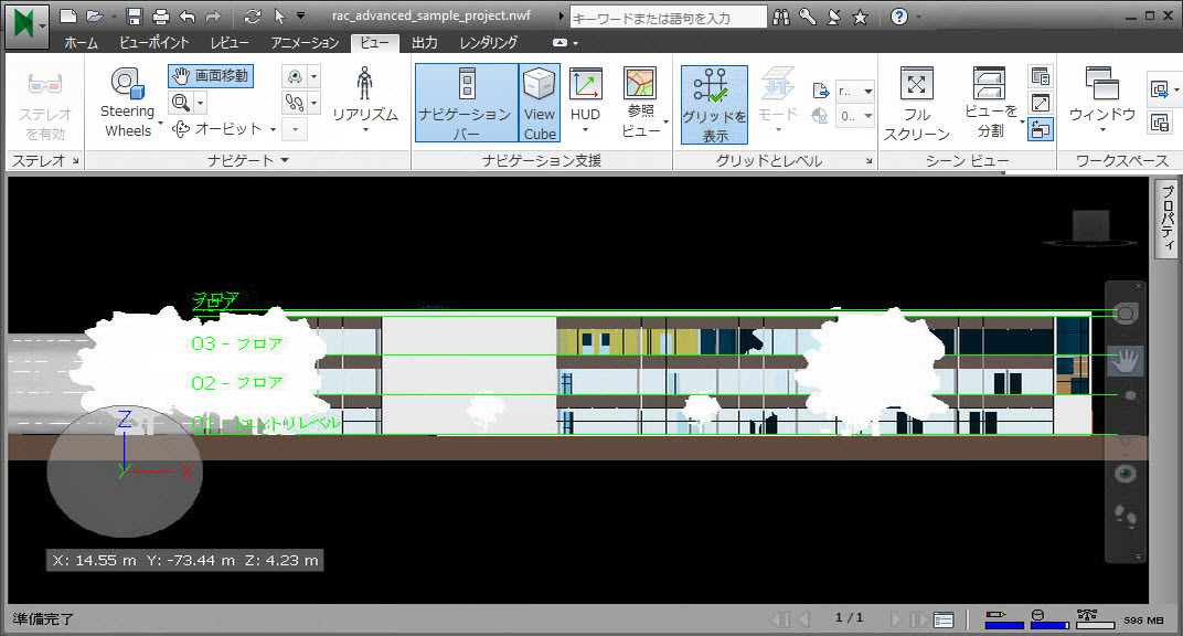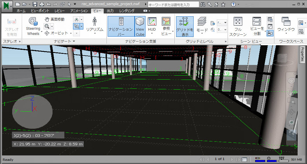 グリッド システムは、Revit でモデルに適用してから、Autodesk Navisworks にインポートすることができます。
