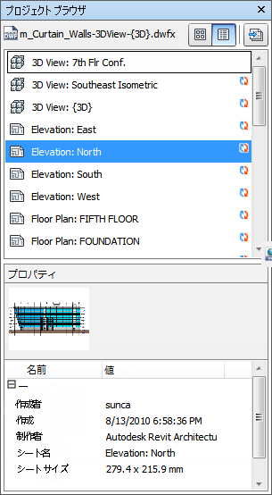 [プロジェクト ブラウザ]はドッキング可能なウィンドウで、現在開かれているファイル内のすべてのシート/モデルの一覧を表示します。