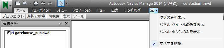 アクティブなリボン タブの名前、またはリボン タブ バー上の任意の場所をダブルクリックします。
